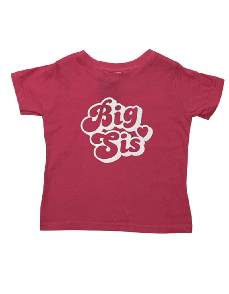 A super cute short sleeve hot pink shirt with BIG SIS lettering on it. Pair with the LIL SIS onesie for a cute photo opp!